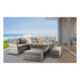 LOWEST PRICE!! Please call 01324 555999 or message via chat to place any orders and for stock availability and the best price! The double ribbed rounded weave is available in Stone, a colour reminiscent of its namesake. The Reclining Corner Dining Se..
