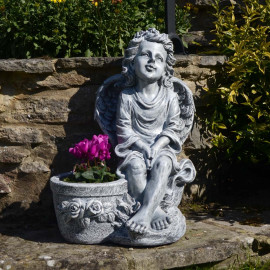 LOWEST PRICE!! Please call 01324 555 999 or message via chat to place any orders and for stock availability and the best price! Cherub Planter Statue Our Cherub Planter is 45cm tall. This charming planter and statue depicts a cherub in thought, the ..