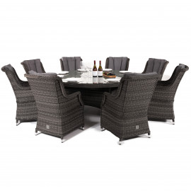 LOWEST PRICE!! Please call 01324 555999 or message via chat to place any orders and for stock availability and the best price! The Victoria 8 Seat Round Dining Set with square Chairs is the ideal way to incorporate class and elegance to your al fresc..